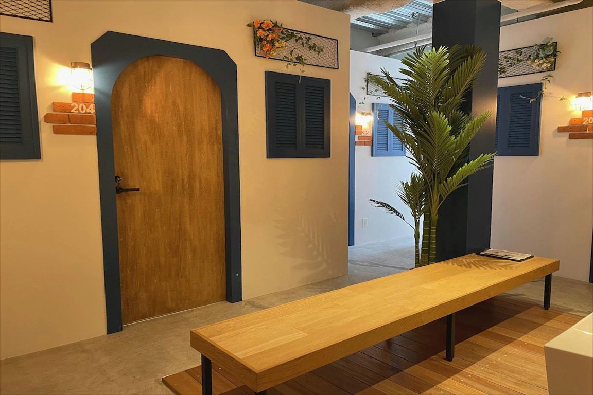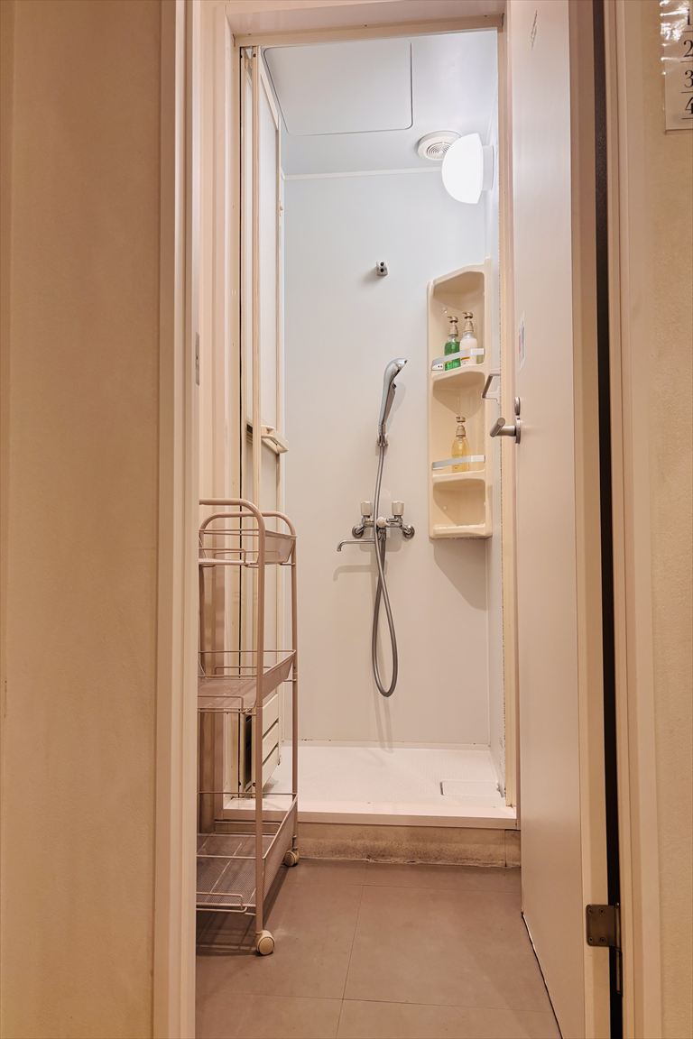 外観、共用シャワールーム、共用トイレ、コインランドリー、共用スペース(2階・3階)